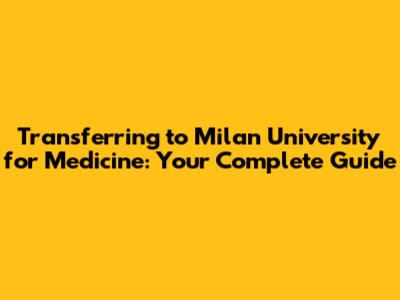 Transfer To Milan University Medicine: Your Complete Guide