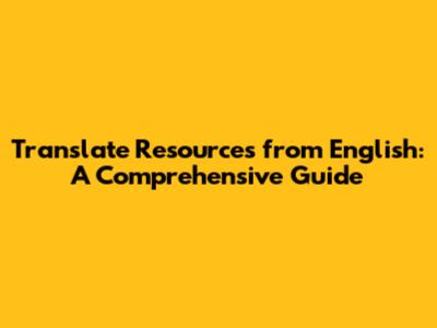 Translate Resources From English: A Comprehensive Guide