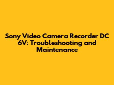 Common Issues with DC 6V Sony Video Camera Recorders