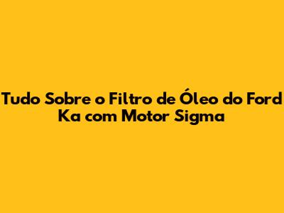 Tudo Sobre O Filtro De Óleo Do Ford Ka Com Motor Sigma