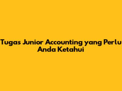 Tugas Junior Accounting Yang Perlu Anda Ketahui