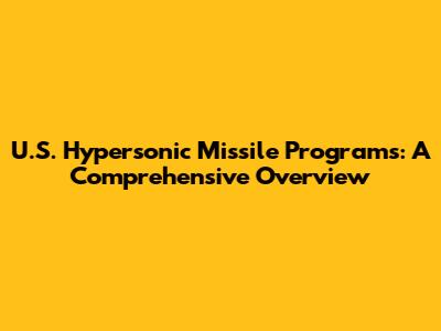 U.S. Hypersonic Missile Programs: A Comprehensive Overview