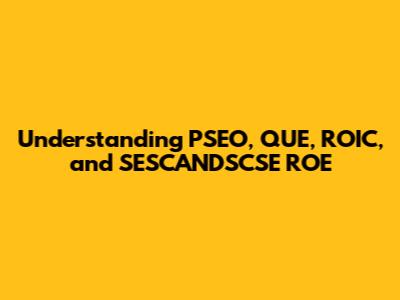 Let's dive into the world of acronyms and initialisms! In this article, we're going to break down the meanings of PSEO, QUE, ROIC, and SESCANDSCSE ROE. These terms might sound like alphabet soup at first, but don't worry, we'll make sense of them together. Whether you're a student, a business professional, or just someone curious about different concepts, understanding these terms can be super helpful. We'll explore each one in detail, providing definitions, examples, and practical applications. So, grab a cup of coffee, sit back, and let's get started!