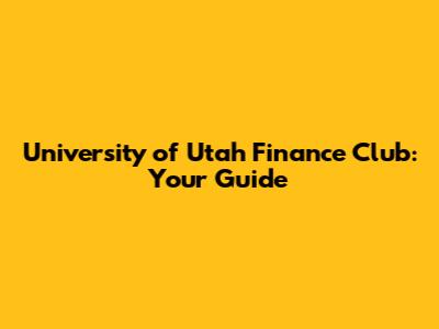 University Of Utah Finance Club: Your Guide