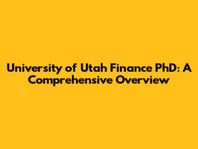University Of Utah Finance PhD: A Comprehensive Overview