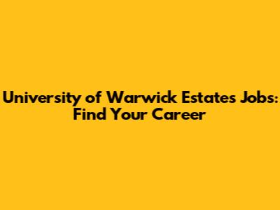 University Of Warwick Estates Jobs: Find Your Career