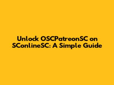 Unlock OSCPatreonSC On SConlineSC: A Simple Guide