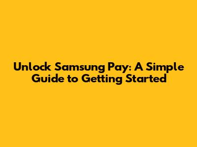 Unlock Samsung Pay: A Simple Guide To Getting Started