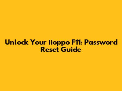 Unlock Your Iioppo F11: Password Reset Guide