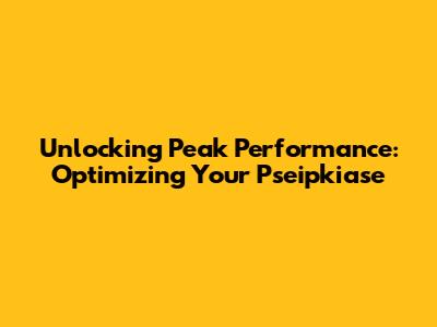 Unlocking Peak Performance: Optimizing Your Pseipkiase