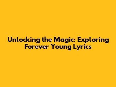 Unlocking The Magic: Exploring Forever Young Lyrics
