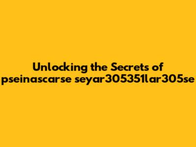 Unlocking The Secrets Of Pseinascarse Seyar305351lar305se