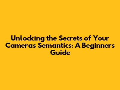 Unlocking The Secrets Of Your Camera's Semantics: A Beginner's Guide