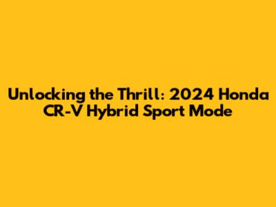 Unlocking The Thrill: 2024 Honda CR-V Hybrid Sport Mode