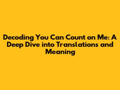 Decoding 'You Can Count on Me': A Deep Dive into Translations and Meaning