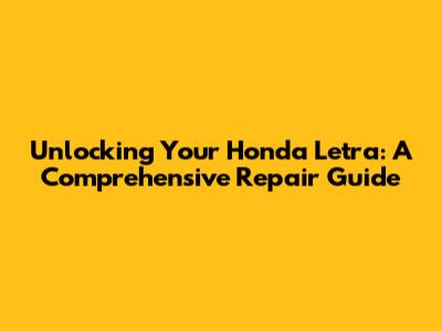 Unlocking Your Honda Letra: A Comprehensive Repair Guide