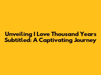 Unveiling 'I Love Thousand Years' Subtitled: A Captivating Journey