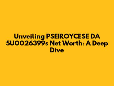 Unveiling PSEIROYCESE DA 5U0026399's Net Worth: A Deep Dive