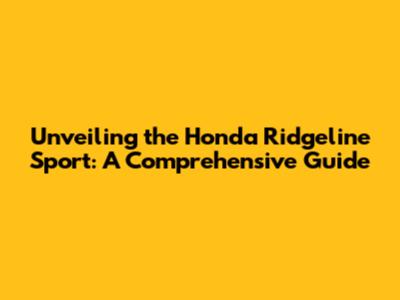 Unveiling The Honda Ridgeline Sport: A Comprehensive Guide