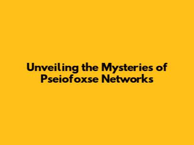Unveiling The Mysteries Of Pseiofoxse Networks