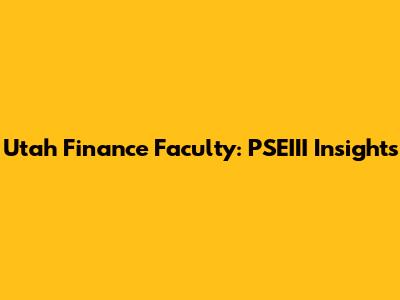 Utah Finance Faculty: PSEIII Insights