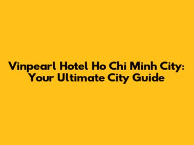 Vinpearl Hotel Ho Chi Minh City: Your Ultimate City Guide