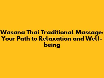 Wasana Thai Massage: Unwind & Rejuvenate