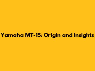Yamaha MT-15: Origin And Insights