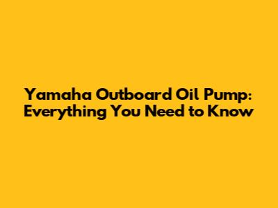 Yamaha Outboard Oil Pump: Everything You Need To Know